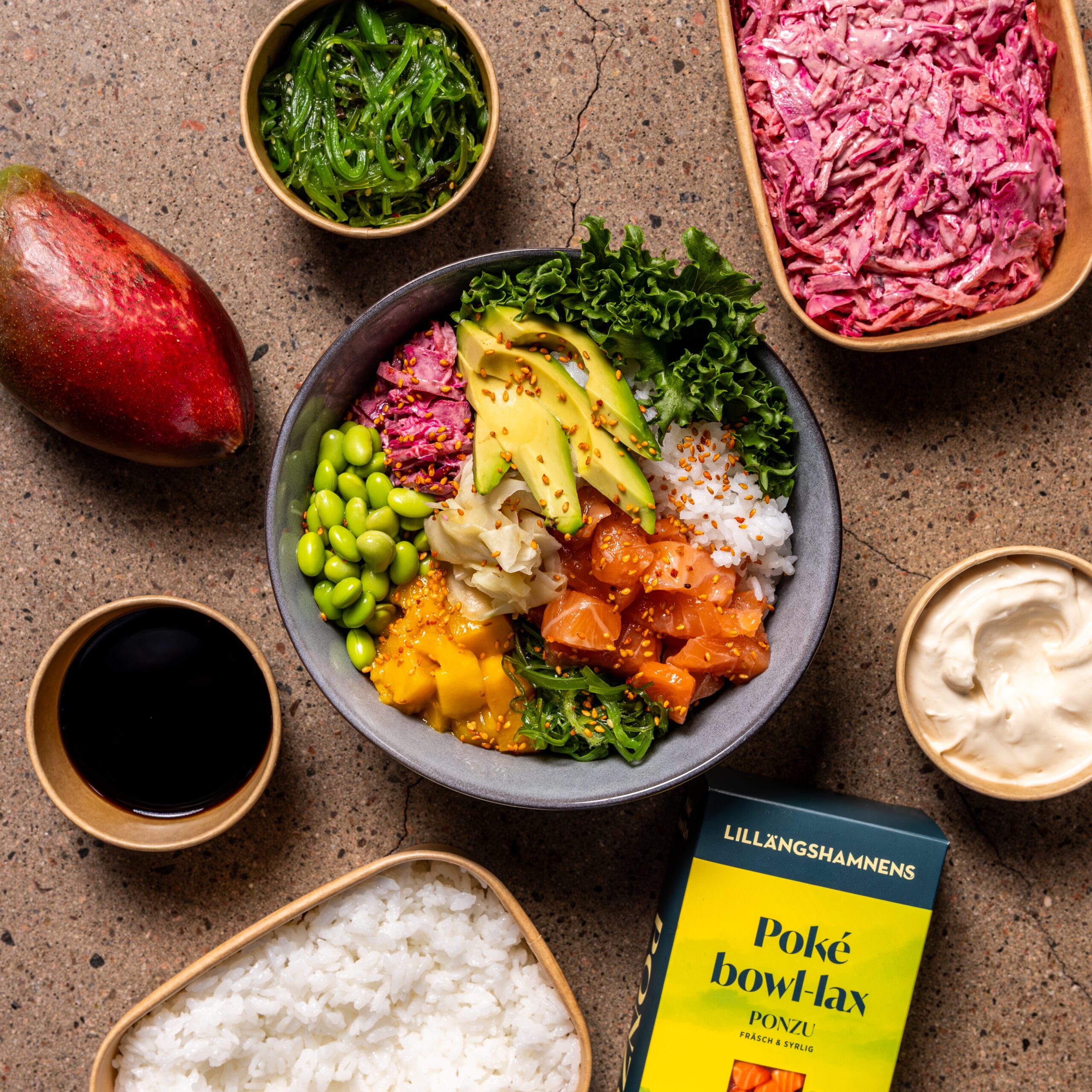 Med vår Pokékasse får du allt du behöver för att enkelt bygga en fantastisk pokébowl hemma.